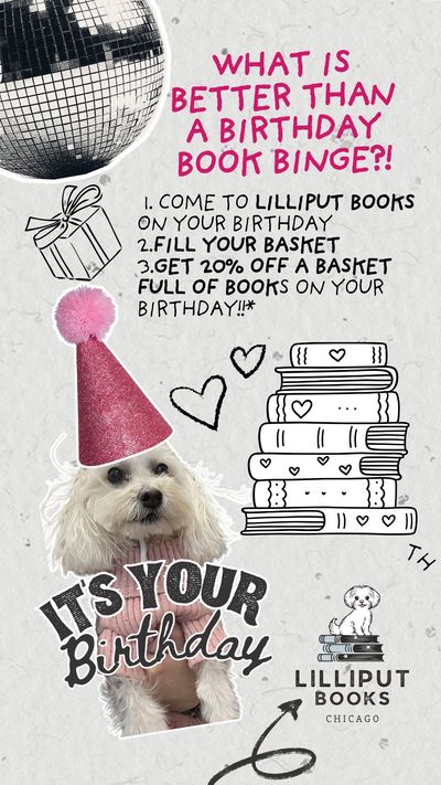 We love birthdays. Come to our store on your birthday and get 20% off a basket full of books!